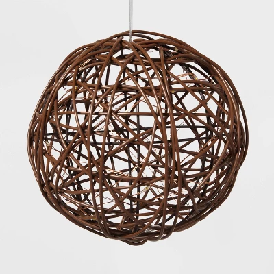 Add a warm glow to your holiday decorations with this Battery-Operated Faux Rattan Sphere Fairy String Lights with Brown Wire from Wondershop™. Featuring a faux-rattan sphere frame in brown with warm white LED bulbs interspersed inside, this fairy light sphere can easily be hung indoors or outdoors for a festive accent that’s perfect for smaller spaces. It’s battery operated so you don’t have to worry about being near an outlet, and the neutral design is suitable for display around the holidays as well as year-round.