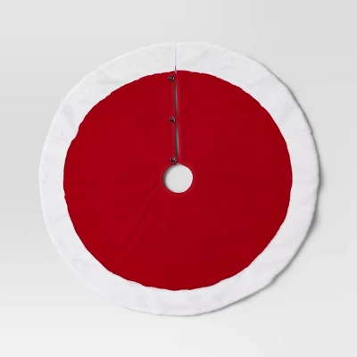 This Christmas Plush with Fur Trim Tree Skirt from Wondershop™ brings timeless style and a cozy feel to your holiday setup. Made from polyester, this plush tree skirt features a bright red finish accented by snowy faux-fur edging for a standout look. Great for keeping sap and fallen needles off your floor, the skirt features a 48-inch circular silhouette for ample coverage.